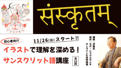 ※スケジュールを更新しました(2025.02.24) サンスクリット語を学び、ヨーガの理解を深める ヨーガを学ぶなら、サンスクリット語の理解が欠かせま … 続きを読む 【伊藤武】イラストで理解を深める!サンスクリット語初心者向け講座 全12回講座